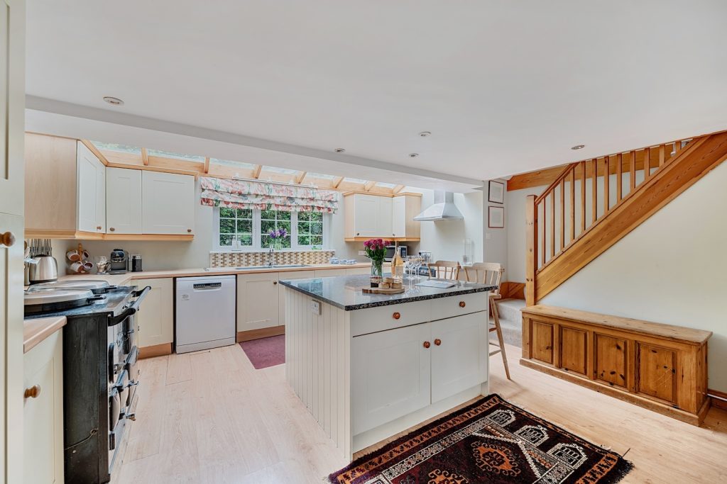 Step inside to discover the bright and spacious open plan kitchen and dining room. It’s a cook’s dream, featuring both a traditional Aga and a full electric cooker with oven, grill and hob. Modern conveniences include a dishwasher, microwave, Nespresso coffee machine, and premium Kenwood and Magimix appliances.